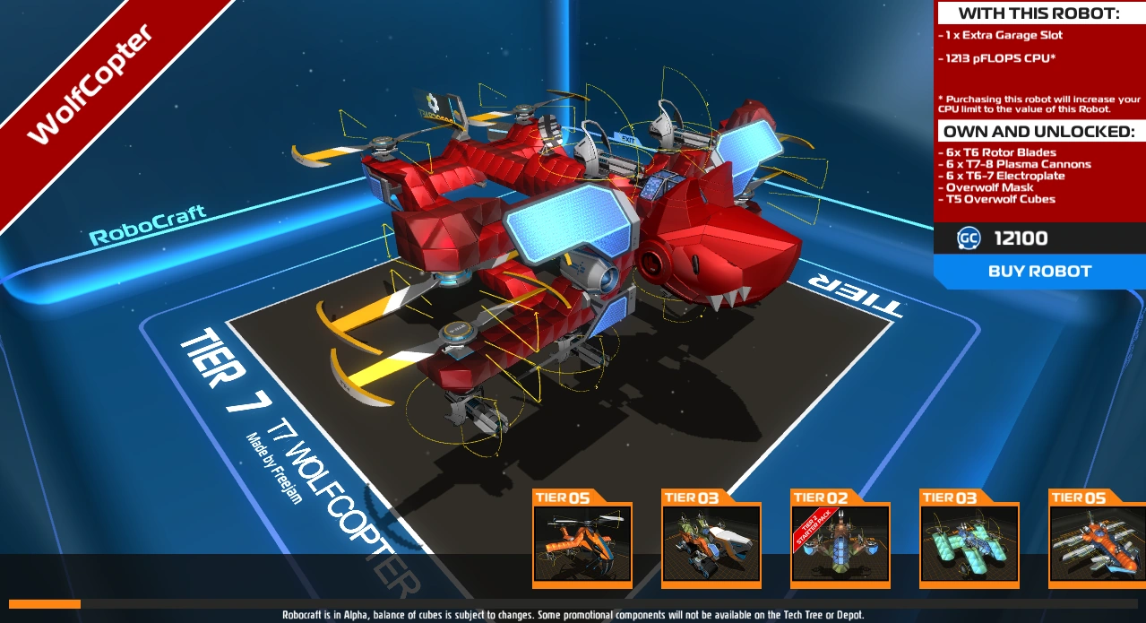 Helicopters are some of the most stable forms of transportation. While they can go to almost any height, they do not have the "yaw" control until you add a second rotor to either the side or behind the first rotor. The helicopter is easier to build than a plane robot. They are very effective when carrying Nano Disruptors because of the helicopter's high mobility,and when carrying Plasma Cannons because helicopters can do "Duck and Shoot" easily. Add several thrusters to make your helicopter move faster. Rotor blades have a large carrying capacity, allowing for very tanky flyers. Their armor is high, but their size makes it seem like they come off very easily. high altitude helicopters can be ghosted at high altitudes for protection.