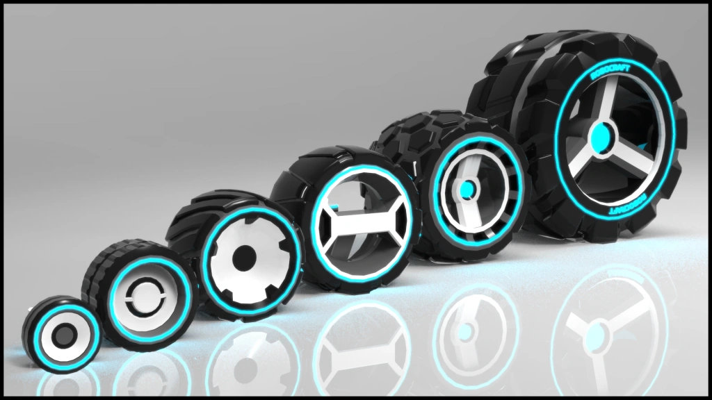 As cubes increase in Tier they become progressively better at their roles. Everything has more armor, movement systems become faster and can carry more weight, weapons do more damage per shot, electroplates shield more damage, and enemy radars, radar jammers and receivers experience a boost in their range and output. Components become progressively larger throughout the eleven tiers, and electroplates continuously change shape, which will in turn necessitate a bigger or redesigned bot at some point. Many functional cubes increase in size at every odd-numbered tier, with even-numbered tier cube being the same size but having a yellow styling, better stats, and more RR.